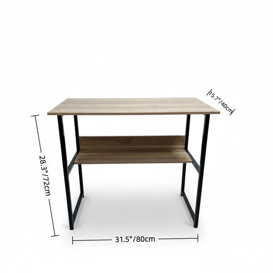 Modern Wooden Study Desk with Metal Frame – Compact Computer Table with Storage Shelf for Home Office & Students