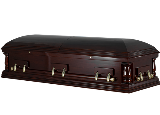 Burial Casket Solid Rosewood Hand Finished with Mahogany Glaze - Adult Size including Cushion and White Fabric Interior