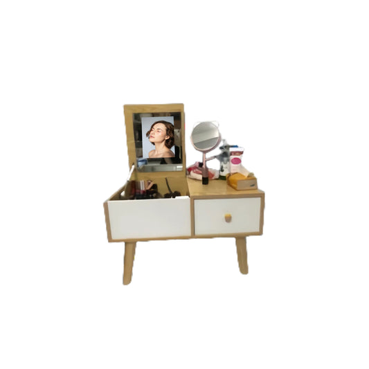 Modern Floor Vanity Table with Flip-Top Mirror & Storage – MDF Wood, Compact & Durable