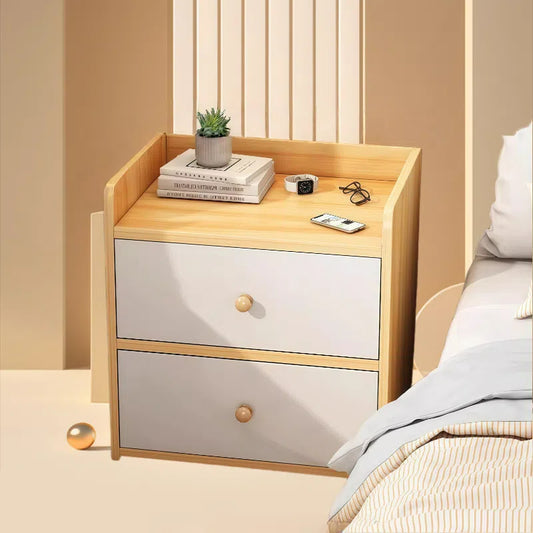 Wooden Bedside Table with 2 Drawers – Minimalist Nightstand Organizer for Bedroom
