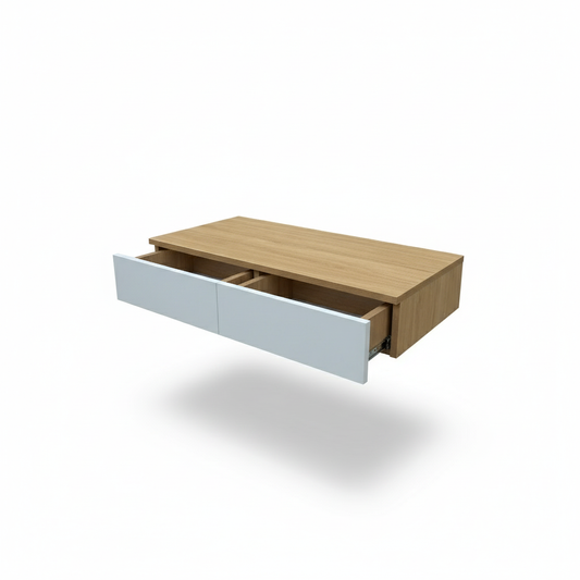 Wall Mounted Floating Vanity Desk with 2 Storage Drawers Modern MDF Makeup Table – 39.4 x 15.7 x 5.9 in (100 x 40 x 15 cm), Space-Saving Dressing Table for Bedroom or Small Spaces
