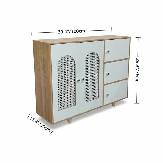 Modern MDF Storage Cabinet with Rattan-Style Doors and Drawers – Multi-Compartment Organizer for Living Room, Bedroom, or Kitchen, 39.4 x 11.8 x 29.9 in (100 x 30 x 76 cm)