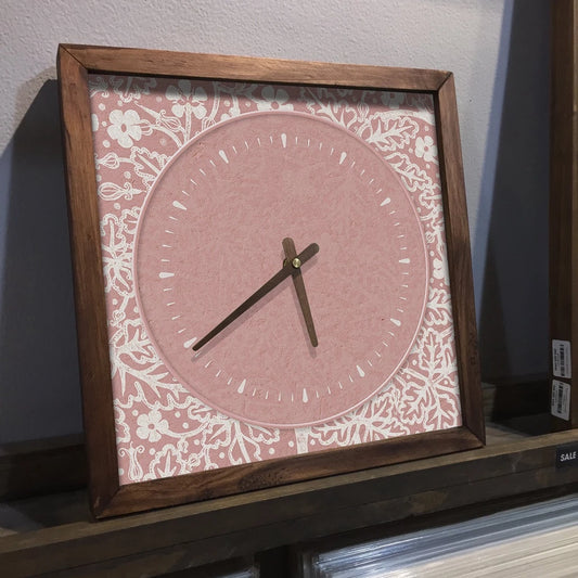 Pink Floral Canvas Art Wall Clock 13" x 13" - Vintage Style Wood Frame with Cotton Canvas