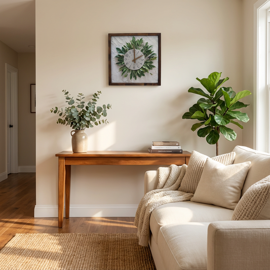 Leaf Bouquet Canvas Art Wall Clock 13" x 13" - Vintage Style Wood Frame with Cotton Canvas