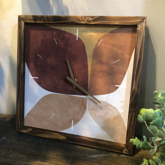 Abstract Flora Art Wall Clock 13" x 13" - Vintage Style Wood Frame with Cotton Canvas