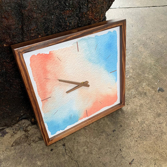 Abstract Watercolor Art Wall Clock 13" x 13" - Vintage Style Wood Frame with Cotton Canvas