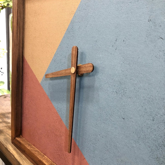 Geometric Art Print Quartz Wall Clock 13" x 13" - Vintage Style Wood Frame with Cotton Canvas