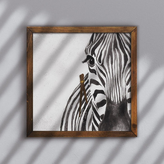 Zebra Face Art Wall Clock 13" x 13" - Vintage Style Wood Frame with Cotton Canvas