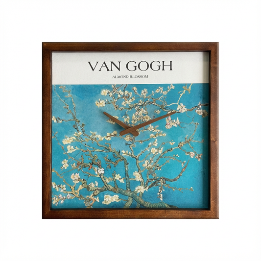Almond Blossom by Van Gogh Art Wall Clock 13" x 13" - Vintage Style Wood Frame with Cotton Canvas