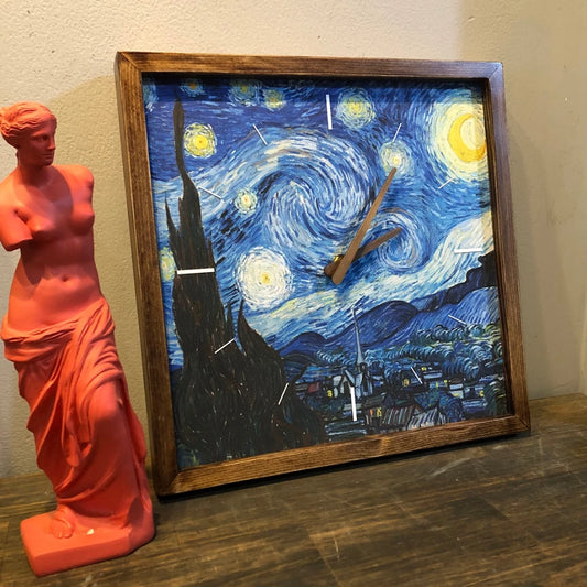 Starry Night Canvas Art Wall Clock 13" x 13" - Vintage Style Wood Frame with Cotton Canvas