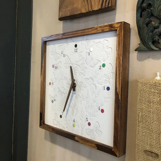 Butterfly Print Quartz Wall Clock 13" x 13" - Vintage Style Wood Frame with Cotton Canvas (Copy)