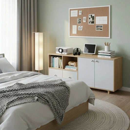 Modern Bookshelf with Storage, Nordic Style Wood Display Cabinet for Living Room, Multipurpose Floor Standing Organizer for Home Office, Sturdy & Easy Assembly, Natural Wood Finish
