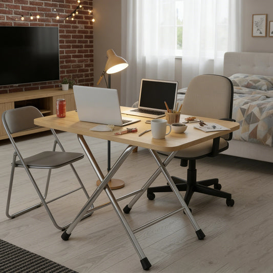 Folding Dining Table with X-Shaped Metal Legs, Space Saving Wooden Kitchen Table for Small Spaces, Sturdy Portable Breakfast Desk for Apartment & Home, Easy Storage, No Assembly Required