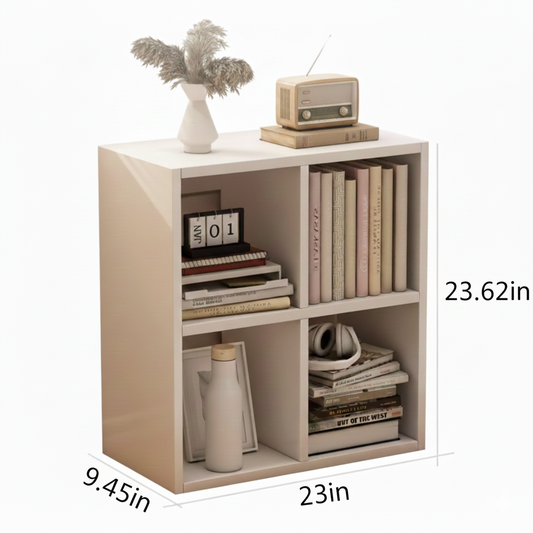 Premium 4 Cube Wooden Storage Boxes or Bookshelf - 23.62 × 9.45 × 23.62" Floor Storage Organizer, Modern Cube Display Shelf for Books, Décor, and Office or Bedroom Use