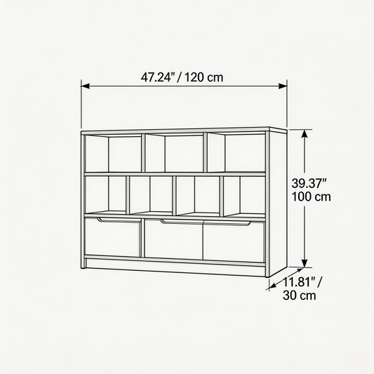 Premium 8 Cube Wooden Storage Boxes or Bookshelf - 46.06 × 9.45 × 23.62" Floor Storage Organizer, Modern Cube Display Shelf for Books, Décor, and Office or Bedroom Use
