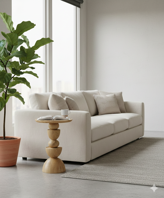 Designer Solid Wood Geometric Side Table - Natural or Walnut Stained