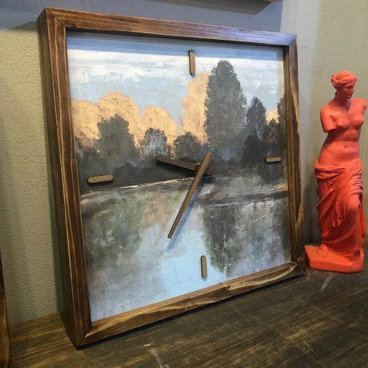 Abstract Watercolor Art Wall Clock 13" x 13" - Vintage Style Wood Frame with Cotton Canvas