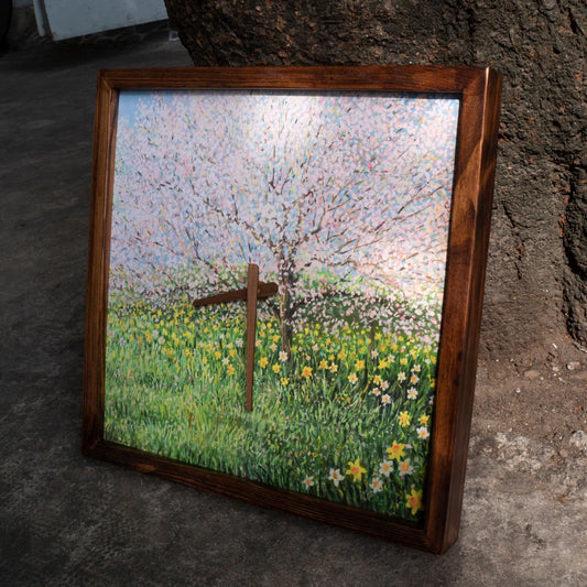 Almond Blossom by Van Gogh Art Wall Clock 13" x 13" - Vintage Style Wood Frame with Cotton Canvas