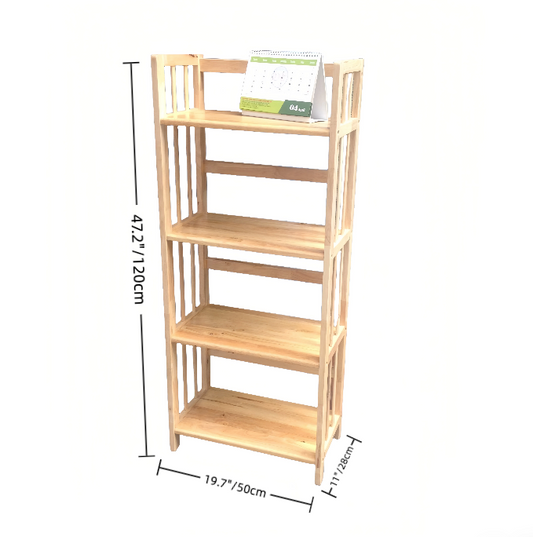 Solid Wood 4-Tier Open Bookshelf – Durable Rubberwood Display Rack for Living Room or Office